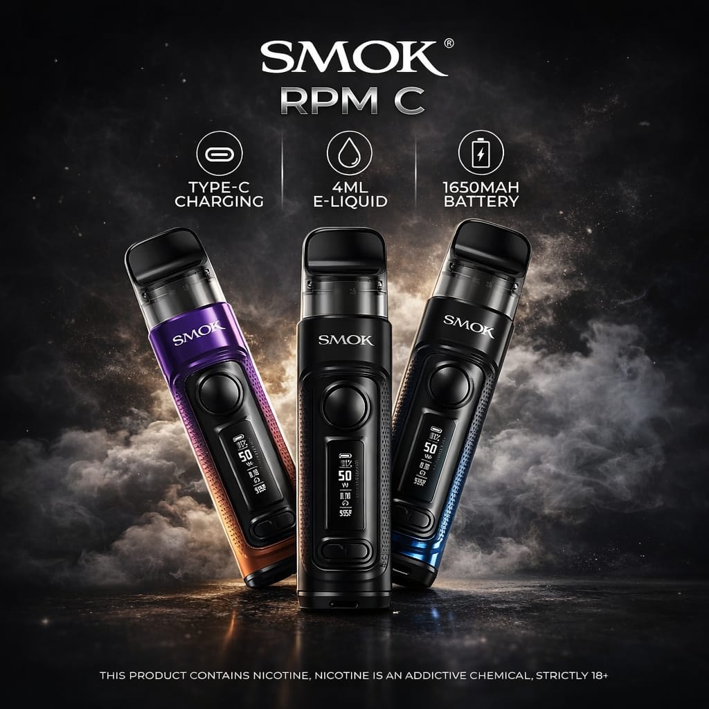 El SMOK RPM C Kit es un dispositivo recargable de alto rendimiento diseñado para ofrecer potencia, versatilidad y control en un formato compacto. Equipado con una batería integrada de 1650 mAh y potencia ajustable hasta 50W, brinda una experiencia personalizada ideal para uso diario.